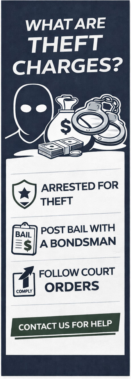 Theft-related arrests can range from minor offenses to more serious felony charges. In many cases, a bond is required before release from jail, especially when the value involved exceeds a certain amount or there is prior history.